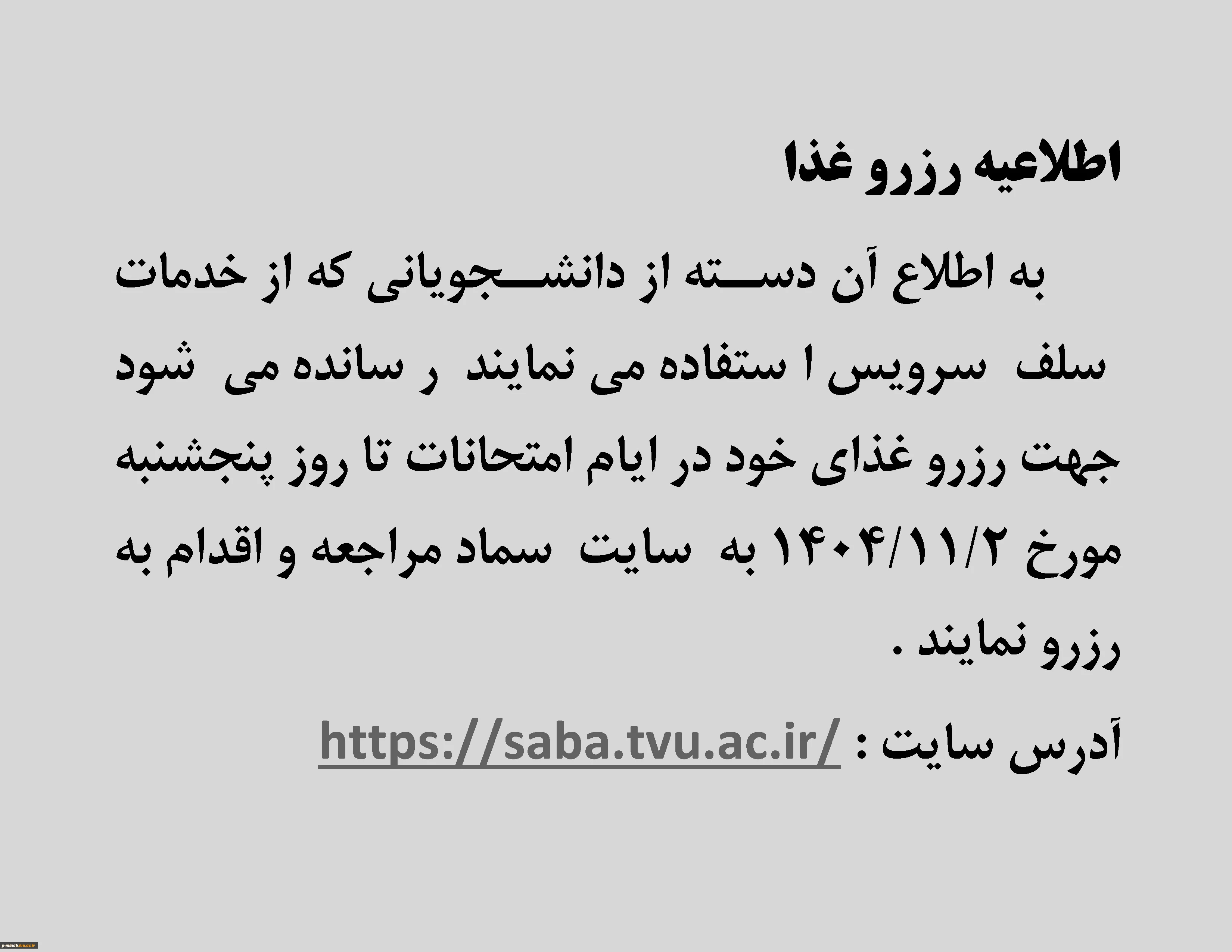 اطلاعیه رزرو غذا 2